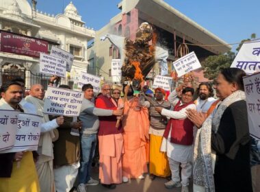 अर्चना टकसालिया, मथुरा बांग्लादेश में हिंदुओं पर लगातार हो रहे अत्याचारों के विरोध में मंगलवार को वृंदावन स्थित चिंतामणि कुंज के सामने तीखा आक्रोश व्यक्त किया गया। श्रीकृष्ण जन्मभूमि मुक्ति न्यास के आह्वान पर साधु-संतों और सामाजिक प्रतिनिधियों ने मोहम्मद यूनुस का पुतला दहन कर बांग्लादेश में हिंदुओं के […]