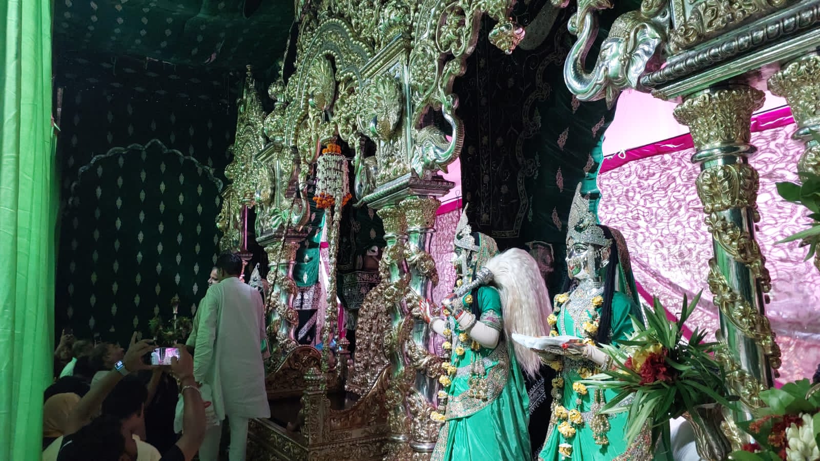 Aaditya mangal news : हरियाली तीज पर शनिवार को वृंदावन में ठाकुर बांके बिहारी जी और बरसाना में राधा रानी ने स्वर्ण-रजत झूले में विराजमान होकर अपने भक्तों को दर्शन दिए। वहीं दूसरी तरफ दक्षिण भारतीय शैली के रंगनाथ मंदिर में शनिवार शाम को भगवान गोदा रंगमन्नार चांदी के झूले में विराजमान होकर भक्तों को दर्शन दिए। दर्शन करने को लाखों श्रद्धालु दुनिया भर से वृंदावन और बरसाना पहुंचे। श्रद्धालुओं की सुरक्षा-व्यवस्था को लेकर डीएम पुलकित खरे और एसएसपी शैलेश पांडेय अधीनस्थ अधिकारियों के साथ वृंदावन में ही मौजूद रहे। मंदिर के आसपास के क्षेत्र भी भ्रमण कर दोनों आला अधिकारियों ने स्थिति का जायजा लिया। ब्रज में हरियाली तीज का पर्व धूमधाम से मनाया गया। ठाकुर बांके बिहारी जी मंदिर में हरियाली तीज पर ही एक बार हिंडोला डाला जाता है। यहां ठाकुर जी को गर्भगृह से निकालकर आंगने में डाले गए झूले पर विराजमान किया गया। इस झूले में ठाकुर बांके बिहारी जी पहली बार 15 अगस्त 1947 को विराजमान हुए थे।