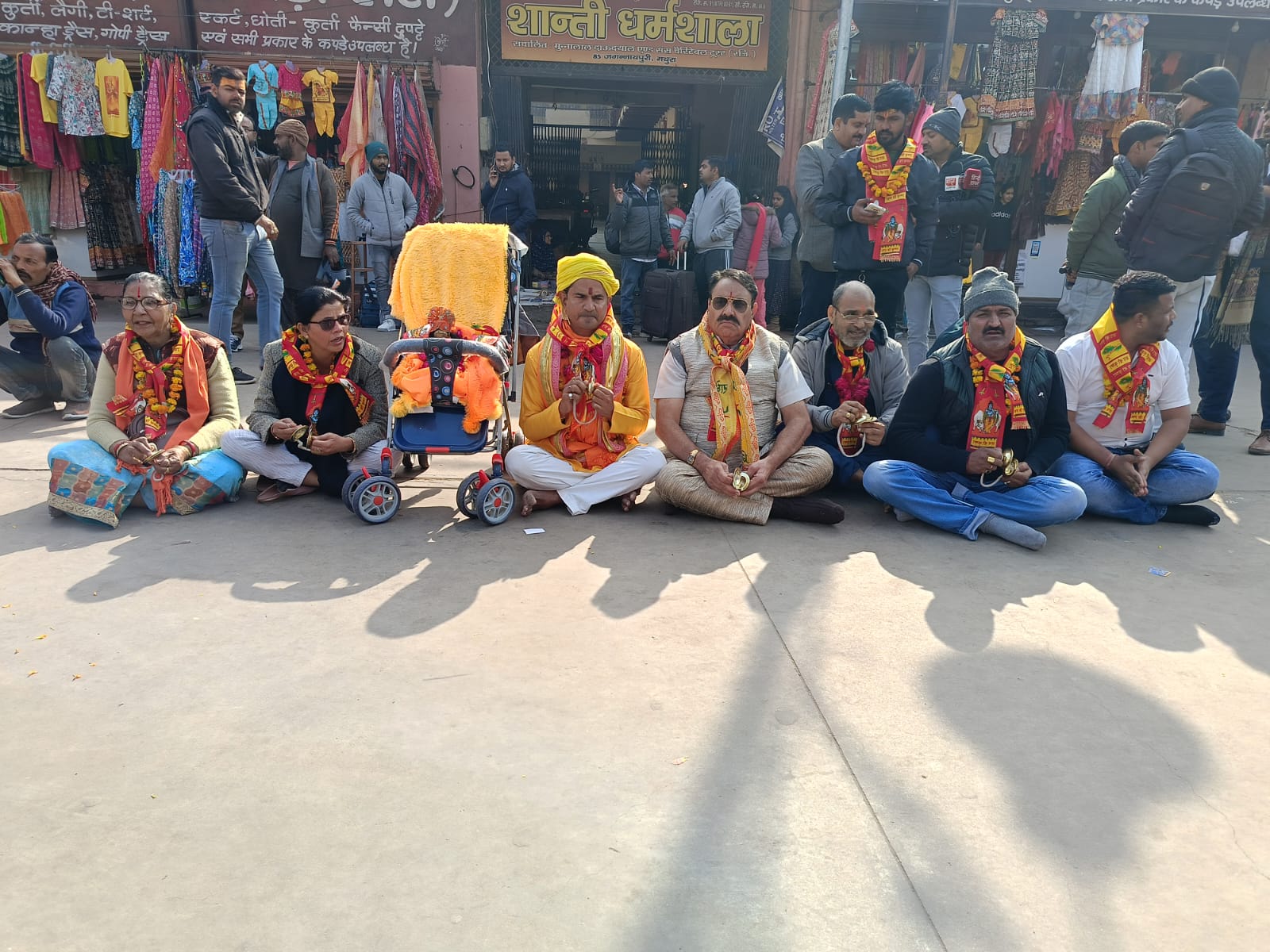 शाही मस्जिद ईदगाह के कोर्ट कमिश्नर सर्वे के लिए आज कमेटी गठन होने आशा में आज श्रीकृष्ण जन्मभूमि संघर्ष न्यास के पदाधिकारियों ने लड्डू गोपाल के साथ श्रीकृष्ण जन्मभूमि के मुख्य गेट पर भजन कीर्तन किया। न्यास के अध्यक्ष दिनेश शर्मा ने बताया, इलाहाबाद हाई कोर्ट को आज शाही मस्जिद ईदगाह के कोर्ट कमिश्नर सर्वे के लिए कमेटी गठन पर पर आज फैसला सुनाना था, पर न्यायालय ने इसे सुरक्षित कर लिया है। इस फैसले को लेकर सुबह से ही वादी दिनेश शर्मा और श्रीकृष्ण जन्मभूमि संघर्ष न्यास के पदाधिकारियों ने लड्डू गोपाल को लेकर मुख्य गेट पर भजन कीर्तन किया। सभी न्यायालय के आदेश का इंतजार कर रहे थे। करीब सवा तीन बजे कोर्ट की तरफ से फैसला सुरक्षित रखने की जानकारी मिलने परकृष्ण भक्त थोड़ा मायूस हुए, पर कहा, ठाकुर जी के यहां देर है अंधेर नहीं। आज नहीं तो कल फैसला अवश्य आएगा। न्यास के राष्ट्रीय प्रवक्ता राजेश पाठक, राष्ट्रीय महामंत्री कन्हैया लाल बृजवासी, मध्यप्रदेश अध्यक्ष उमेश चंद्र सोनी, राष्ट्रीय सचिव डॉ जमुना देवी शर्मा, प्रदेश मीडिया प्रभारी रिचा शर्मा, महानगर अध्यक्ष नरेश ठाकुर, राहुल गौतम, भारत कश्यप, बीडी चौधरी, अश्वनी शर्मा, सुखराम कमल, अनुराधा शर्मा, सरोज गोला, अनुराधा चौधरी, वंदना, राखी भजन-कीर्तन में शामिल हुई।
