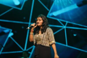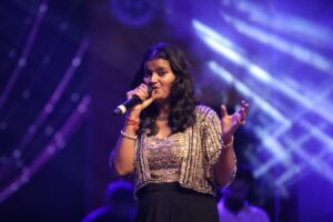ब्रज रज उत्सव में नमो बैंड के साथ नम्रता सिंह भजन प्रस्तुत करते हुए।