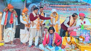 चौमुंहा स्थित राधा मोहन जी गोशाला में व्यास संत राधे-राधे बाबूजी के सान्निध्य में चल रही श्रीमद्भागवत कथा के दौरान बुधवार को श्रीकृष्ण जन्मभूमि बनाम शाही ईदगाह मस्जिद प्रकरण के हिंदू पक्षकार महेंद्र प्रताप सिंह एडवोकेट पहुंचे। उन्होंने कथा श्रवण के बाद उपस्थित श्रद्धालुओं को संबोधित करते हुए जन्मभूमि से जुड़े ऐतिहासिक और न्यायिक पक्षों की जानकारी दी।