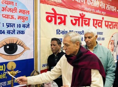 दिलीप यादव, वरिष्ठ पत्रकार मथुरा -धौलीप्याऊ स्थित अंजलि महल में 141 मरीजों की हुई नेत्र जांच -25 को मोतियाबिंद निकला, 20 आपरेशन को रैफर मथुरा। अंधता निवारण के क्षेत्र में समर्पित संस्था कल्याणं करोति द्वारा 27 जनवरी सोमवार को धौलीप्याऊ स्थित अंजलि महल में निशुल्क नेत्र चिकित्सा शिविर का आयोजन […]